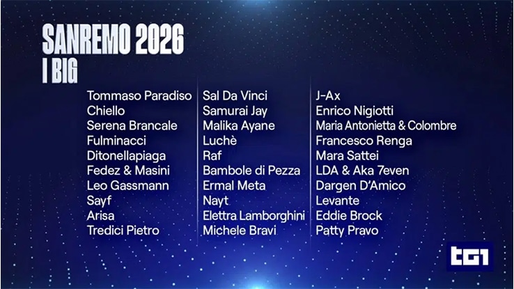 Sanremo 2026: ecco i 30 Big annunciati al TG1